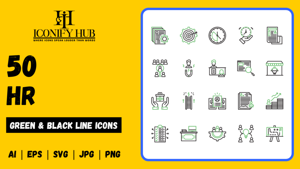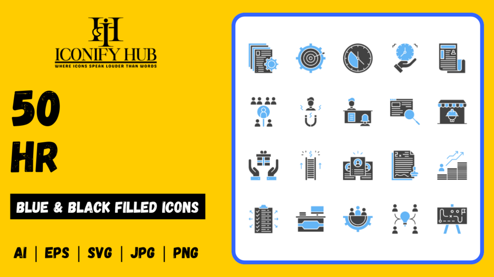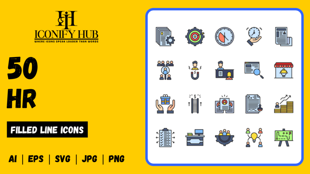 - Infographics & Reports: Visually communicate HR data and trends more effectively with the help of impactful infographics and reports that utilize these icons.