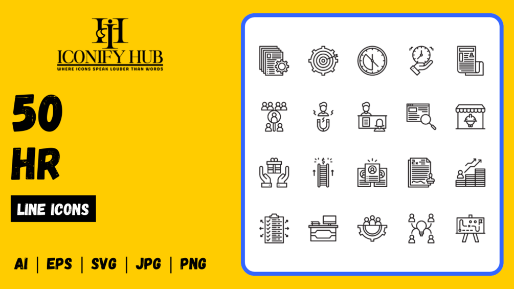 - Social Media & Marketing Materials: Boost the effectiveness of your HR social media posts and marketing materials with clear and concise icons.